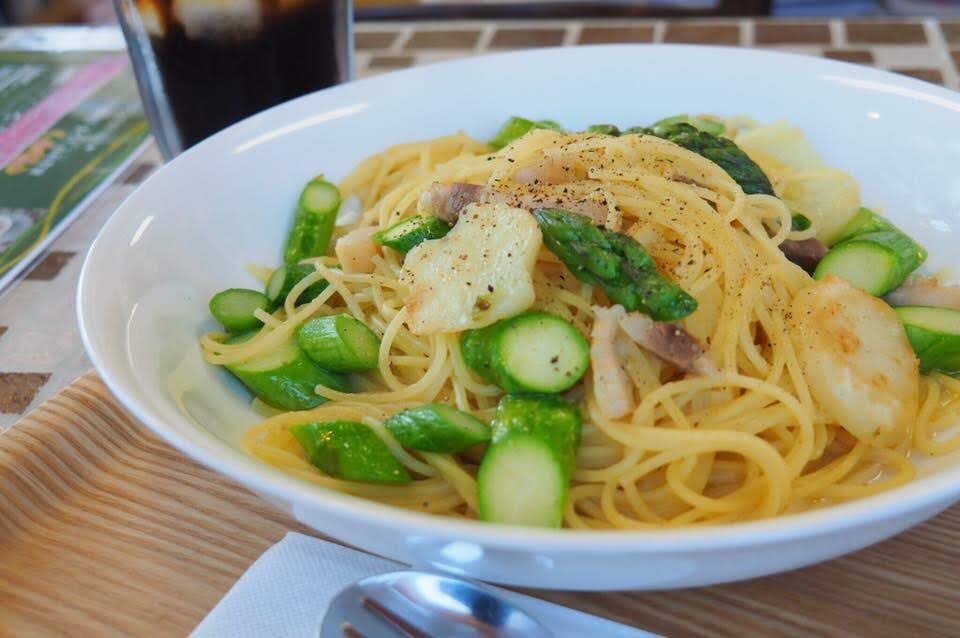 パスタは上富良野ポークの自家製ベーコンを使用したものが定番ですが、ベジタリアンやヴィーガンの方でも楽しめるメニューに変更可能です。